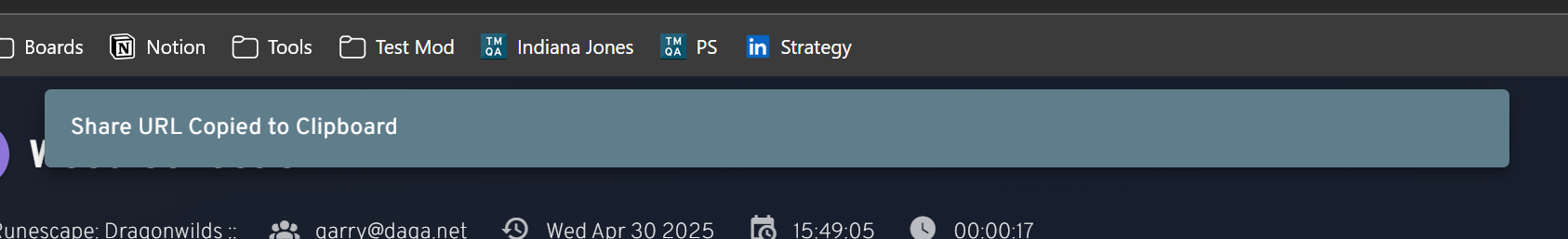 Clicking this button will automatically copy a unique share link to your computers clipboard and you can share this directly with another person.